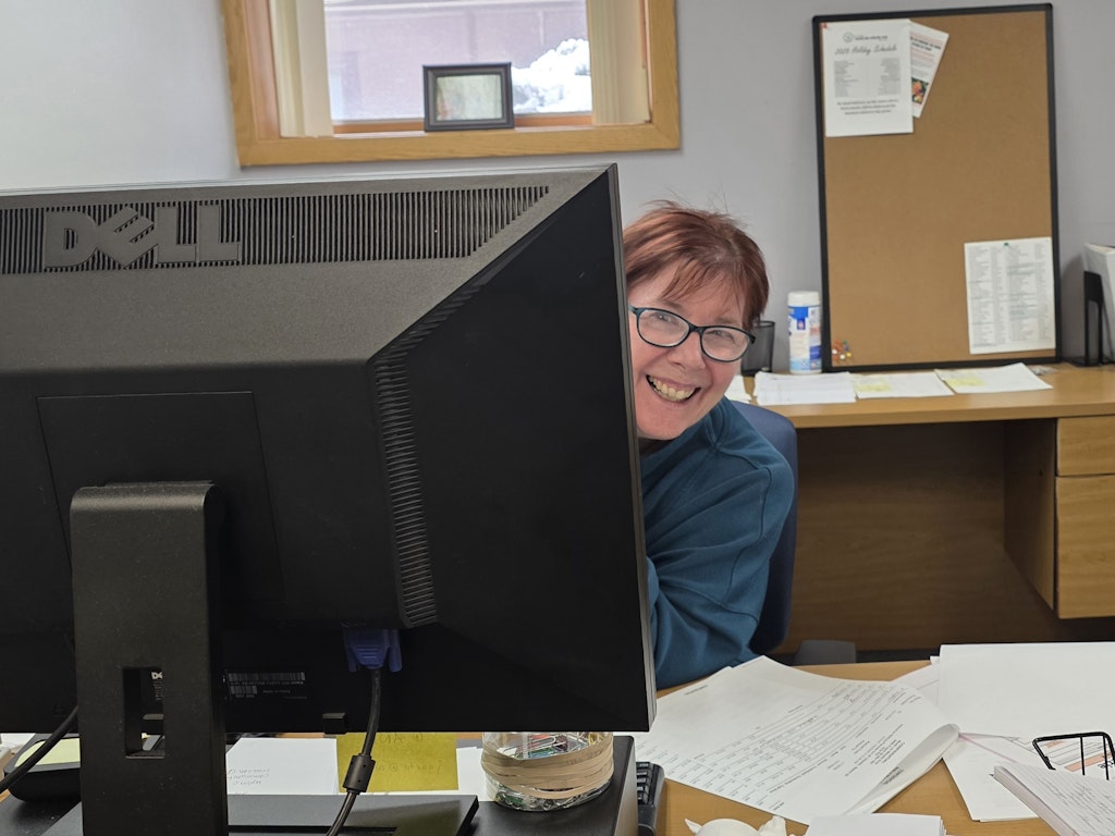 MaryBeth's retirement lasted but a blink - not only does she volunteer as a driver on Wednesdays but she's taken on the part-time billing coordinator position at the office.