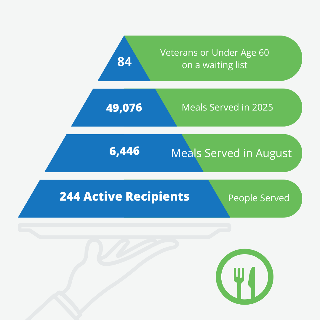 Your gifts mean more than meals. They mean smiles at the door, safety checks for those living alone, and the reassurance that our senior and veteran neighbors are cared for and remembered. Together, we are making it possible for the most vulnerable in our community to age at home with dignity and independence.