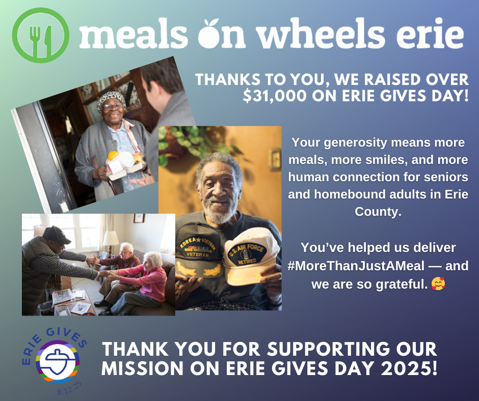From all of us at Meals on Wheels Erie — and from the seniors and veterans whose lives you’ve touched — thank you for helping us deliver More Than Just a Meal. 💙